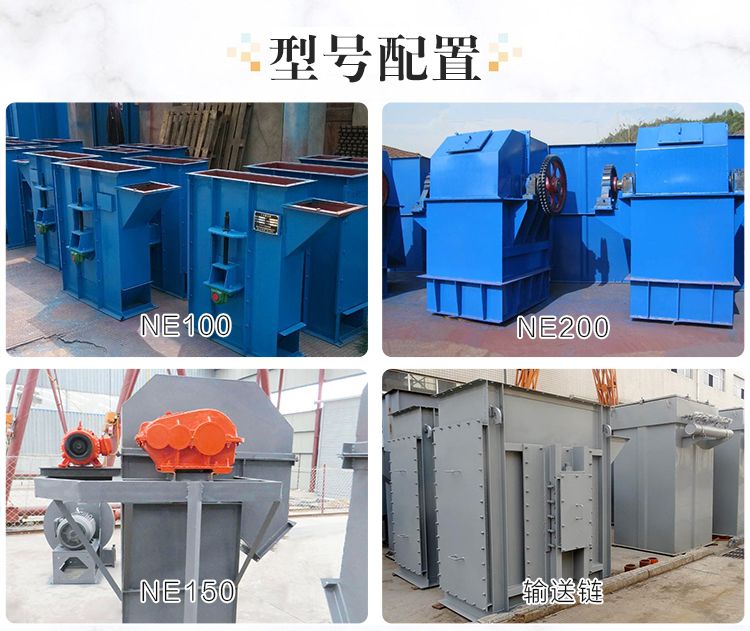 散裝物料板鏈斗式提升機擁有大小不同的11種型號以及不同配置,型號有NE15、NE30、NE50 、NE100、NE150、NE200、NE300、NE400、NE500、NE600、NE800等,不同大小型號的提升機配置(料斗、鏈條、振動電機)選用的都不同所以價格也會有所不同,提升產量越大所選擇的料斗規(guī)格與電機功率也就越大。