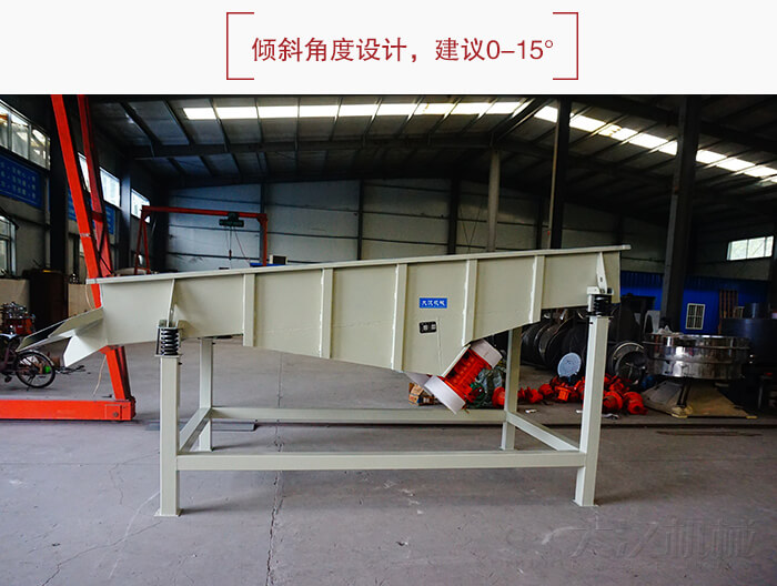 DZSF系列直線振動篩為雙振動電機驅(qū)動。當兩臺振動電機做同步、反向旋轉(zhuǎn)時,其偏心塊所產(chǎn)生的激振力在平行于電機軸線的方向相互抵消,在垂直于電機軸的方向疊為一合力,因此篩機的運動軌跡為一直線。兩電機軸相對篩面在垂直方向有一傾角,在激振力和物料自重力的合力作用下,物料在篩面上被拋起跳躍或向前作直線運動,從而達到對物料進行篩選和分級的目的。