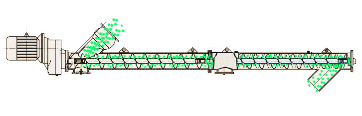 2、物料進入:物料從進料口進入輸送機,被螺旋葉片推動沿著螺旋槽向前輸送。